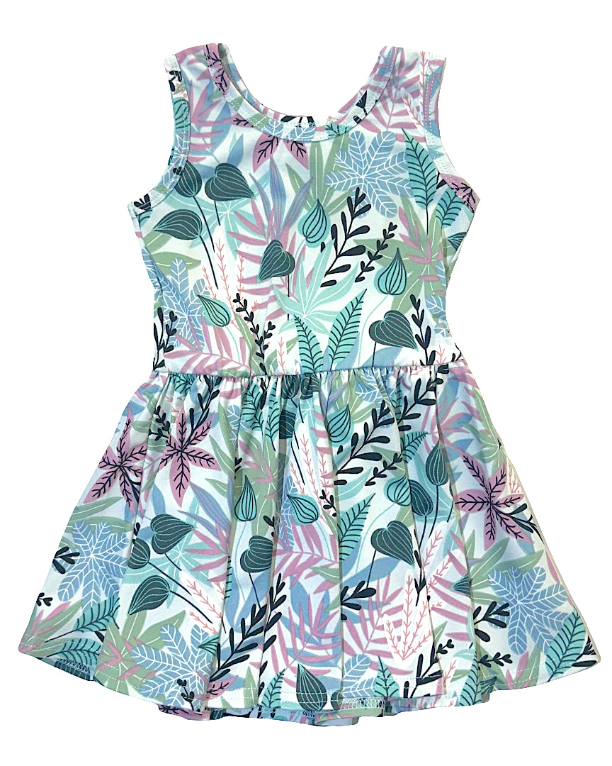 The Whispering Meadow Tank Dress is a breezy twirly dress designed for sunshine, play, and endless spinning. Featuring a soft botanical print with delicate leaves in shades of mint, teal, blush, and lavender, this dress brings a fresh nature-inspired look girls will love.