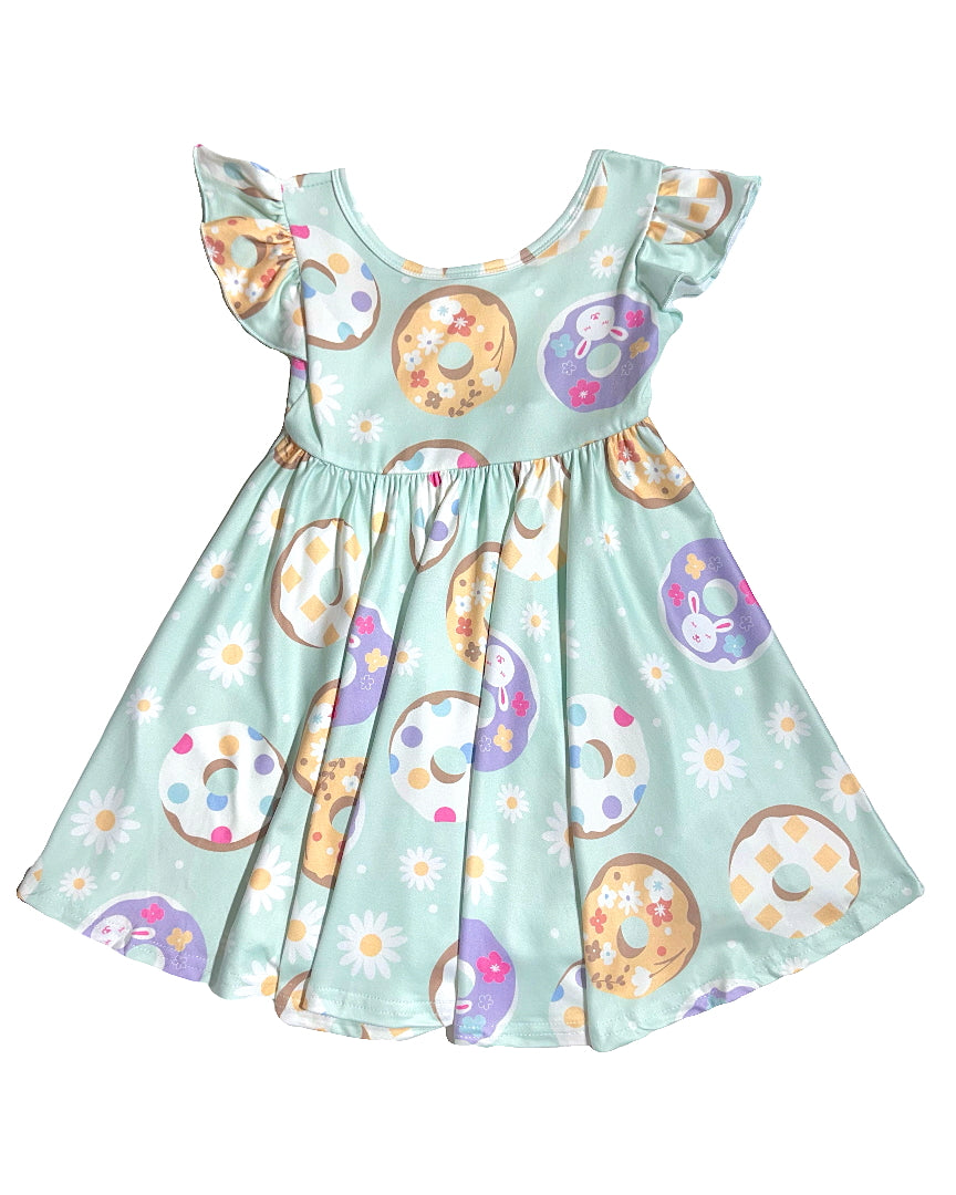 The Sweet Sprinkles Empire Dress is a treat made for twirls! Adorned with pastel donuts, cheerful daisies, and a soft minty background, this dress is as fun as it is adorable. The empire waistline and flutter sleeves add extra sweetness, while the flowy skirt makes it perfect for playdates, parties, and sprinkle-filled adventures.
