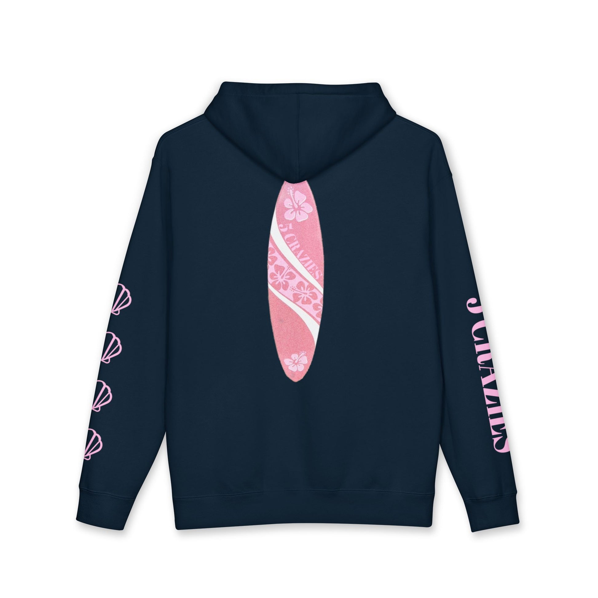 Azure Surfboard Hoodie — Pink Shell Surf Design