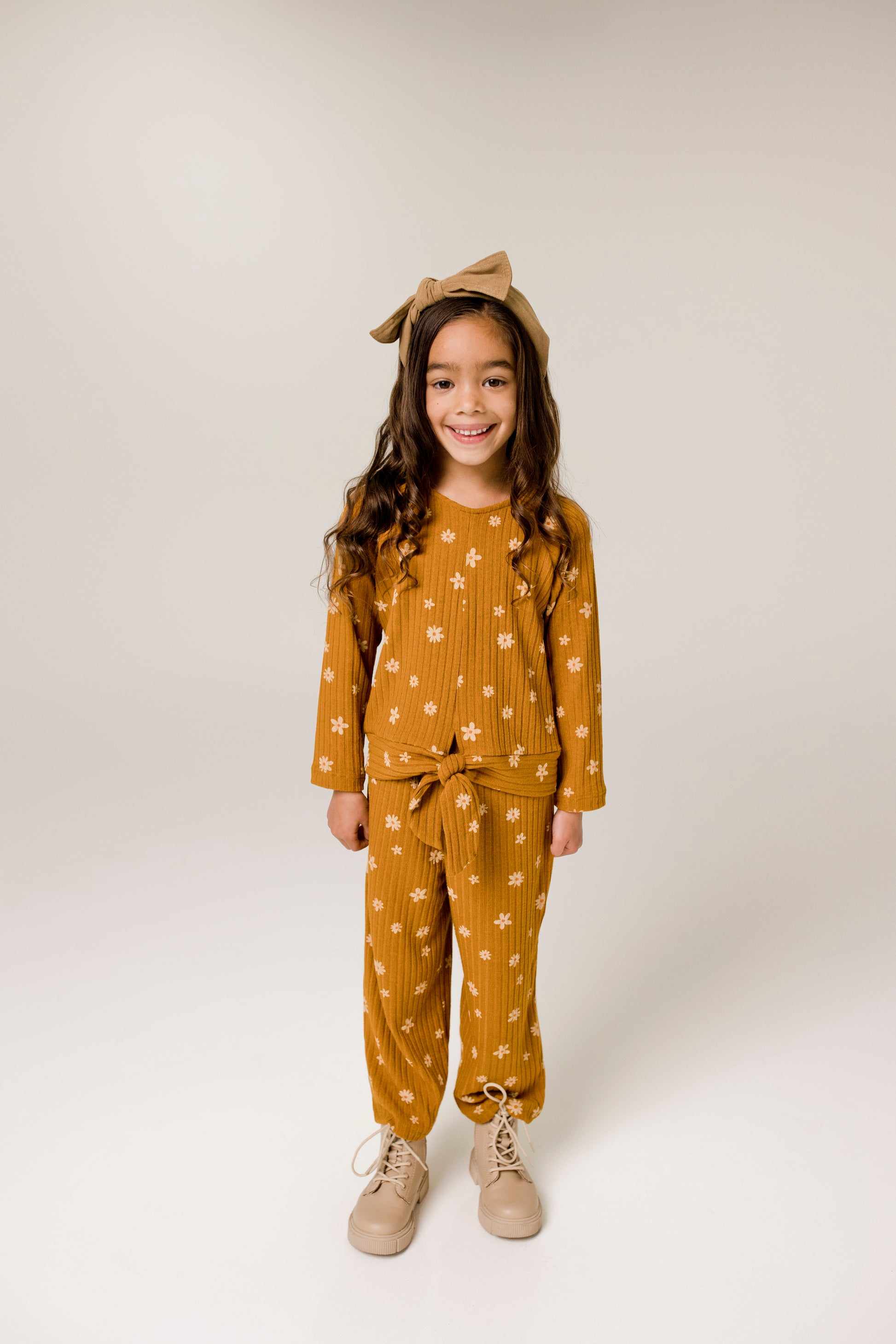 Terracotta Daisy Ribbed Top
