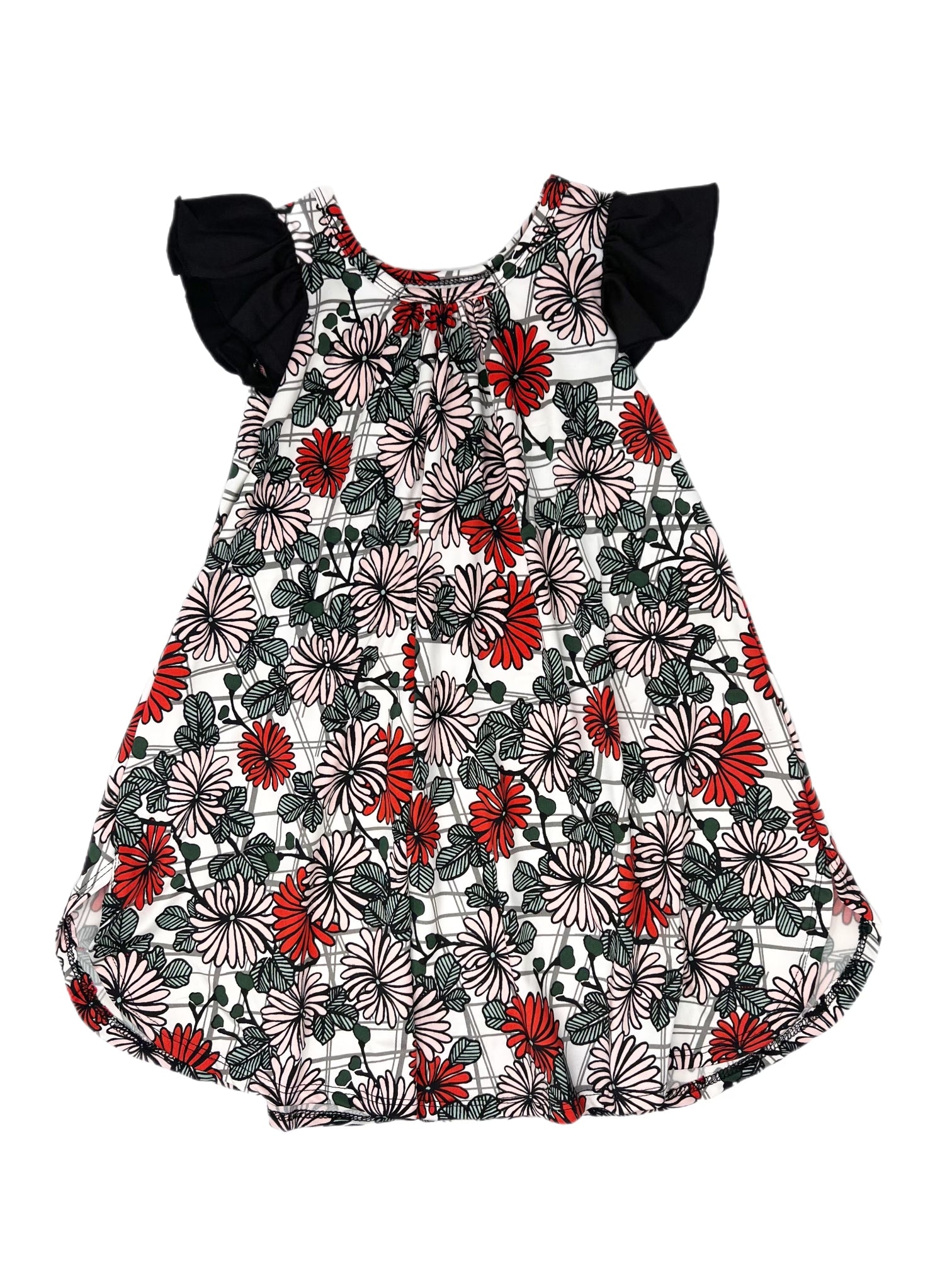Step into a world of floral enchantment with the Mystic Garden Whimsical Swing Dress! This dreamy dress features a striking mix of crimson, blush, and emerald blooms on a classic black-and-white checkered backdrop, giving it a bold yet timeless charm. The flutter sleeves in solid black add a touch of elegance, making it perfect for twirling through any adventure.